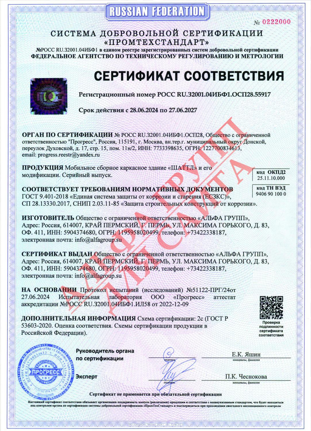 Протокол испытаний пожарной безопасности капсульный дом ШАТТЛ